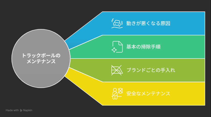 写真付きでイメージを掴みたい場合は、手順をまとめたトラックボールの手入れで滑りが劇的復活する方法もチェックしてみてください。